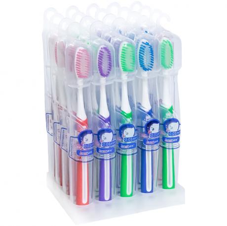 Зубна щітка «Lanshare» з ультратонкою щетиною 0,01 мм призначена для дбайливого та ефективного догляду за ротовою порожниною. Тонкі щетинки м’яко очищають поверхню зубів і важкодоступні ділянки, допомагаючи видаляти наліт без пошкодження емалі та подразнення ясен. Довжина щітки становить 19 см, розмір головки — 3×1 см, висота щетинок — 1,2 см, що забезпечує комфортне та контрольоване чищення.Щітка має індивідуальний пластиковий футляр розміром 22×2,5×2,5 см, зручний для зберігання та подорожей. Транспортна упаковка 11×13×22 см містить 20 щіток і підходить для оптового продажу.