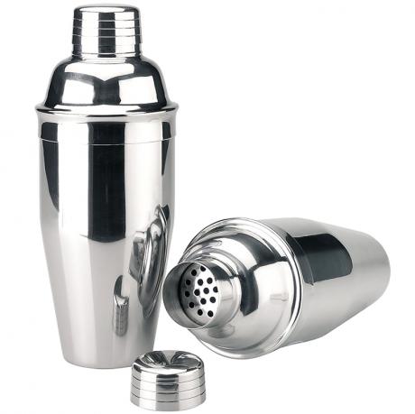 Шейкер для приготування коктейлів складається з трьох частин: металева склянка, велика кришка з ситом та маленька кришка. Висота шейкера 22 см, об'єм 550 мл. Зручна форма дозволяє тримати його однією рукою під час приготування коктейлю.