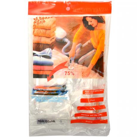 Цей вакуумний пакет призначений для зберігання речей. Виготовлений з щільного поліетилену. Його розміри становлять 60х80 см.